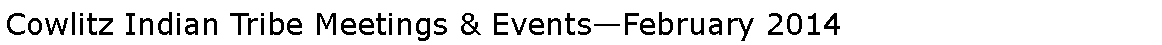 1 Culture Board 7 a.m. Longview Powwow Committee 7 a.m. Longview Tribal Council 9 a.m. Longview Medicine Wheel Teachings 12:45 p.m. Castle Rock Grange Naming Ernie Donovan Wellness Room Ceremony 3 p.m. Longview Health Board After Tribal Council Longview |