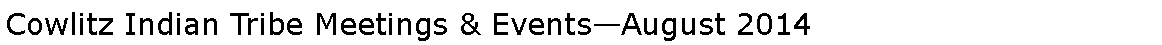 2 Culture Board 7 a.m. St. Mary’s Powwow Comm. 7 a.m. St. Mary’s Tribal Council 9 a.m. St. Mary’s Medicine Wheel Teachings 12:45 p.m. Castle Rock Grange Drum Group 2—3 p.m. Mossyrock Health Board 5 p.m. St. Mary’s |