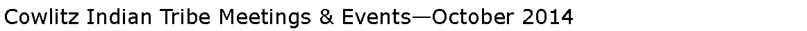 4 Culture Board 7 a.m. St. Mary’s Tribal Council 9 a.m. St. Mary’s Medicine Wheel Teachings 12:45 p.m. Castle Rock Grange Cowlitz Youth Leadership Opportunities: Weavers Conference Squaxin Island |